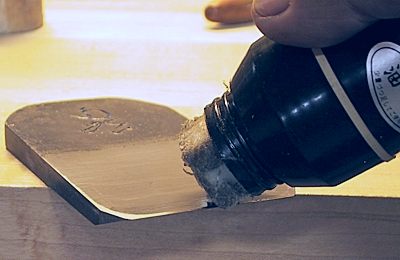 Il est bon de huiler le fer et le contrefer pour empêcher la rouille. Le tranchant est si fin que la moindre rouille, même si on ne la voit pas à l'oeil nu, altèrera ses performances. L’huile de camélia est conseillée car elle ne sèche pas, s’étale en un mince film et ne tache pas le bois (figure 14). Les Japonaises et les lutteurs de sumo s'en mettent dans les cheveux.