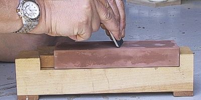 On lui donne enfin un second biseau d’environ 70 degrés sur une pierre à aiguiser (figure 4).