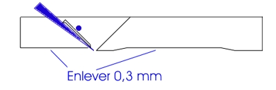 Pour un rabot de finition, la lumière ne devrait pas dépasser 0,1 mm de largeur car nous avons la prétention de faire des planures dix fois plus minces.